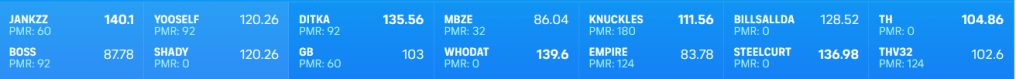 Jason is currently running away with the Top Performer award. Jason currently has three top performing high scores for a total of 442.2 points. Luke still holds the record with 4 total weekly high scores totaling 717.66 points. We will keep an eye on Jason to see if he will be able to challenge Luke’s record.