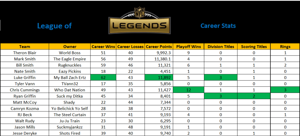 Legends Career Stats Updated on 8/14/2022 Share this: Share on X (Opens in new window) X Share on Facebook (Opens in new window) Facebook Like Loading...